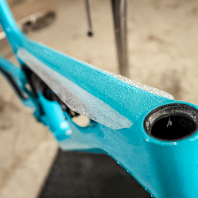 Protecția dintr-o singură piesă este disponibilă pentru downtube (tubul inferior) și toptube (tubul superior). Toate kiturile de protecție RideWrap sunt auto-vindecătoare, superhidrofobe printate specific pe folii de protecție dedicate bicicletelor.